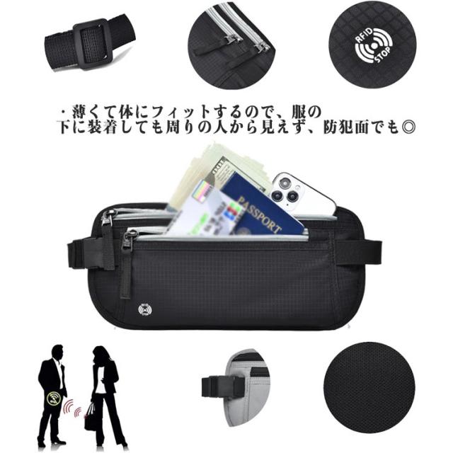 セキュリティポーチ ウエストポーチ シークレットポーチ スキミング防止 パスポートケース ウエストバッグ 海外旅行 貴重品入れ トラベル 防犯 盗難防止 服の下 隠せる 薄い