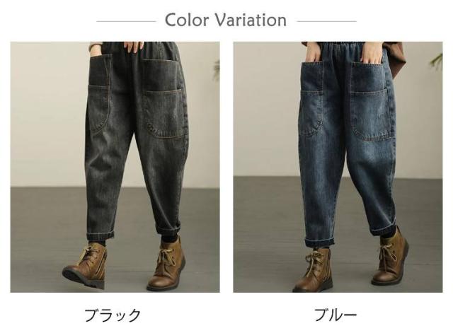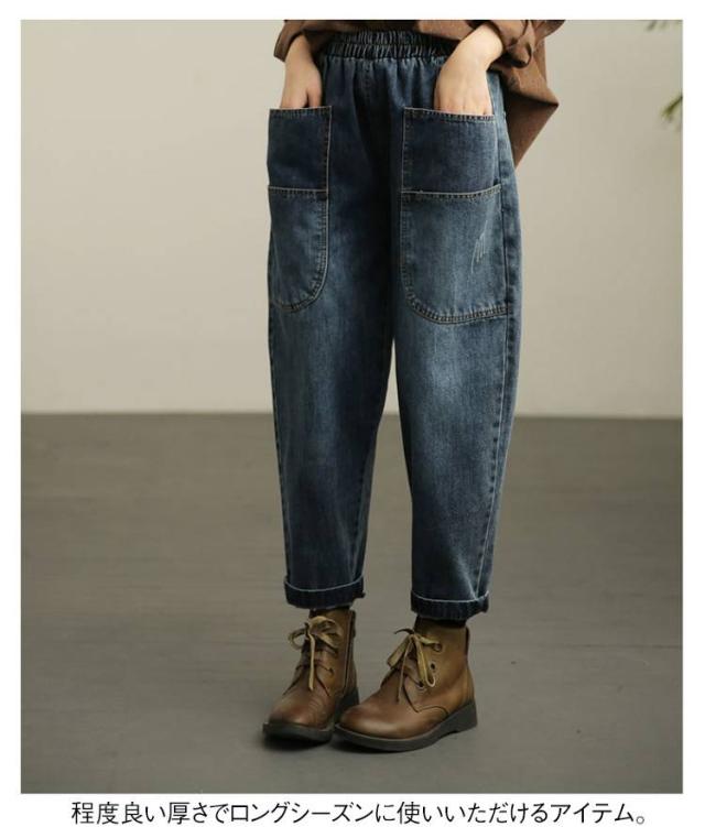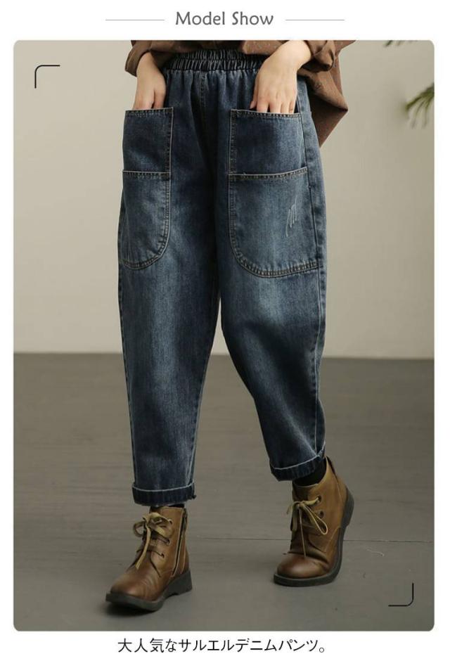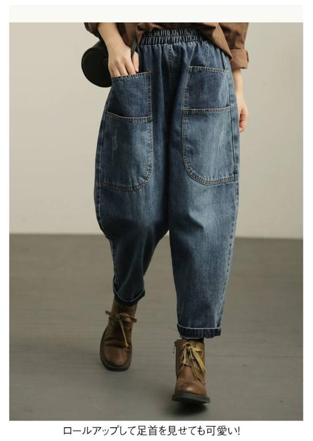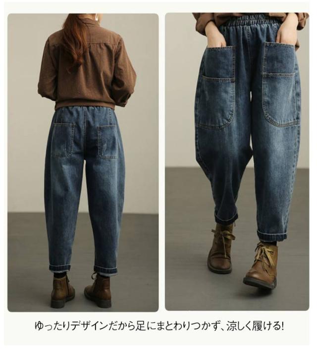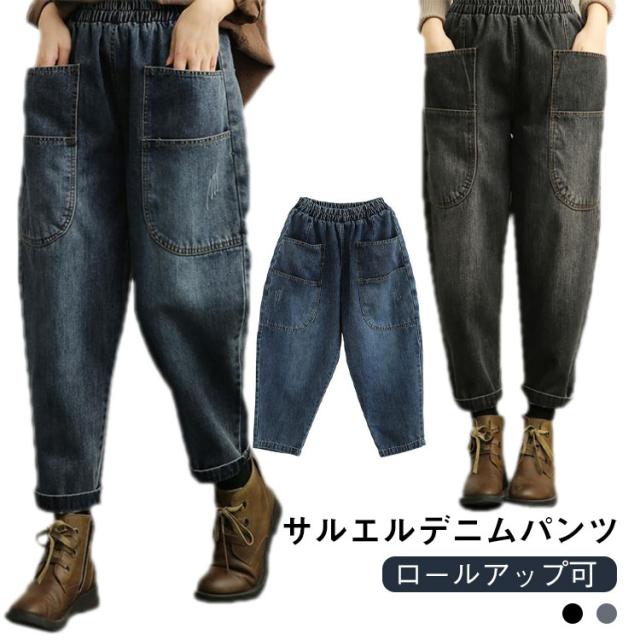 ウエストゴム レディース デニム パンツ デニムパンツ ワイド サルエル サルエルパンツ ゆったり ジーンズ 大きいサイズ 春 夏 秋 30代 40代