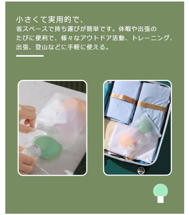 | 様々な質感の液体の保存に適したトラベルボトル。【60m?90ml】【3個セット】 素材は安全でやわらかい食品級シリコン製なので、力を入れなくても少量から液体を出すことができます。 小さくて実用的で、省スペースで持ち運びが簡単です。休暇や出張のたびに便利で、様々なアウトドア活動、トレーニング、出張、登山などに手軽に使える。 60mlは1週間〜10日程度の容量、90mlは2週間程度の容量を想定しております。旅行日数や用途に合わせてお選びいただけます。 半透明なので中身が一目瞭然です。仕分けがしやすく、詰め替えも可能です。優れた構造材を使用し、ねじ込み式の蓋で、液漏れを防止します。衣類を汚れから守る。バッグやポーチの中で逆さにしても漏れない。 | |