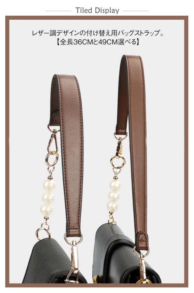 | レザー調デザインの付け替え用バッグストラップ。【全長36cmと49cm選べる】 手持ちのカバンに付け替えるだけでイメージチェンジ☆ 7色選択可能ですので、あなたのバッグに最もフィットする色をお選びください。 高品質のPU材質で作られ、バッグに繋ぐ部分は金属の材質なので、耐久性が強いです。 壊れてしまったストラップの交換用に、DIYやリメイクに、 お手持ちのバッグのイメチェンにも◎ | |