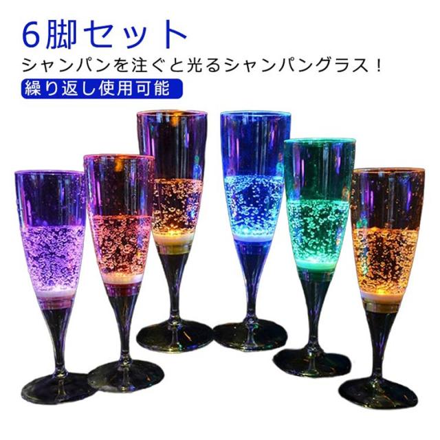 | シャンパンを注ぐと光るシャンパングラス!パーティーやイベントの盛り上げアイテムとして大人気のセット商品です!【6脚セット】【繰り返し使用可能】 センサータイプのこのグラスは、ドリンクを注ぐと光り出します! シャンパンを注ぐと気泡がLEDの光で美しく輝きます! バランスのとれた美しいデザイン!結婚式・クラブパーティー・ホームパーティーと使うシーンを選びません! パーティー・イベントを新しい光りの演出で盛り上げちゃってください♪ 一度使うともう普通のグラスでの乾杯では物足らなくなること間違いなし! 水洗いで繰り返し使用可能。 | |