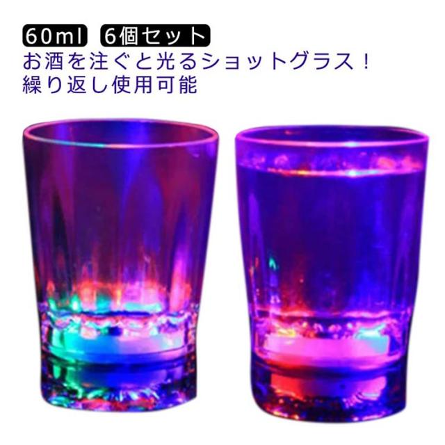光る セット 日本酒 LEDグラス ウイスキー ショット ロックグラス LED 6個セット テキーラ ショットグラス お酒 コップ グラス プラスチック 割れない 60ml センサーネオン 光るグラス 焼酎グラス クリスマス パーティー ホームパーティ イベント キャンプ