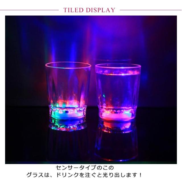 | お酒を注ぐと光るショットグラス!【60ml】【6個セット】【繰り返し使用可能】 センサータイプのこのグラスは、ドリンクを注ぐと光り出します! お酒を注ぐと気泡がLEDの光で美しく輝きます! バランスのとれた美しいデザイン!結婚式・クラブパーティー・ホームパーティーと使うシーンを選びません! パーティー・イベントを新しい光りの演出で盛り上げちゃってください♪ 一度使うともう普通のグラスでの乾杯では物足らなくなること間違いなし! パーティーやイベントの盛り上げアイテムとして大人気のセット商品です! 水洗いで繰り返し使用可能。 | |