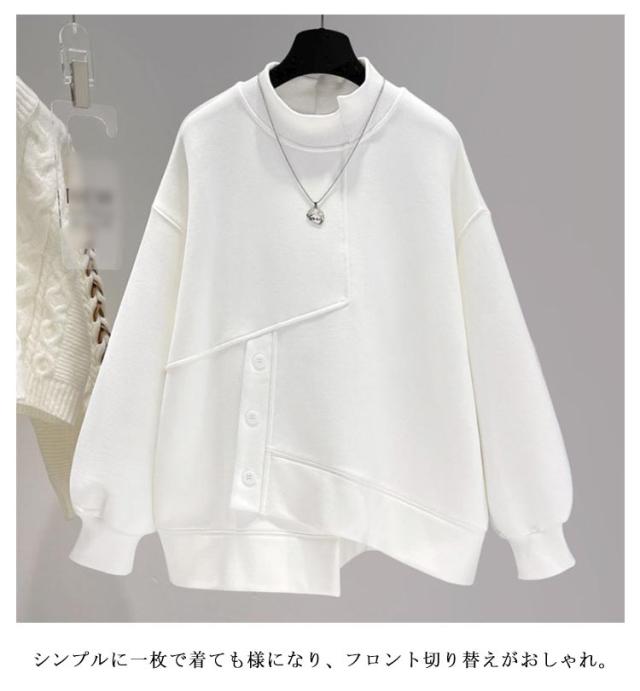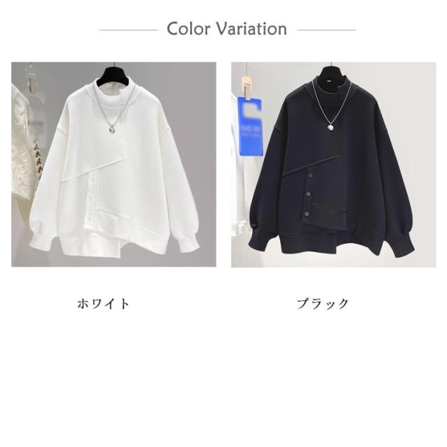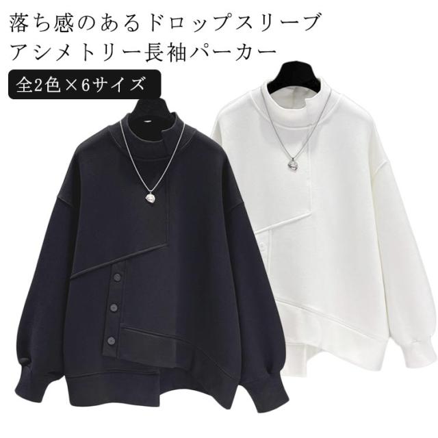 パーカー レディース トレーナー ラウンドネック 黒 パーカー 白 不規則 薄手 カジュアル ゆったり プルオーバー 上着 アシメトリー 無地