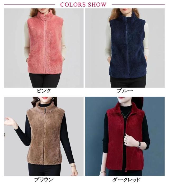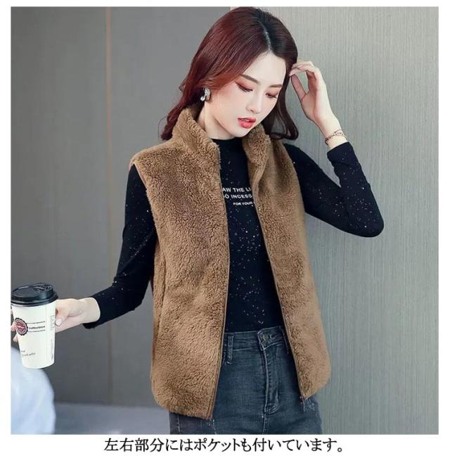 ボアベスト もこもこ レディース ボアベスト ボア ジレ 秋冬 フリースベスト 前開き アウター ベスト ボアジャケット ノースリーブ 袖なし 厚手 スタンドカラー 立ち襟 起毛 ルームウェア パジャマ 毛布 部屋着 防寒着 アウトドア