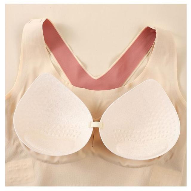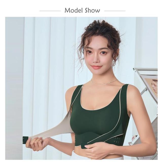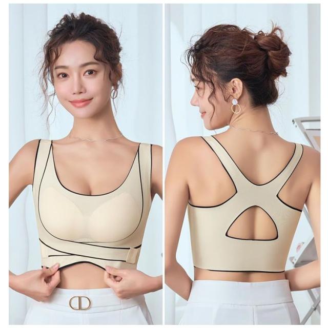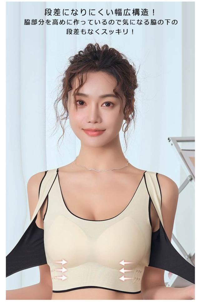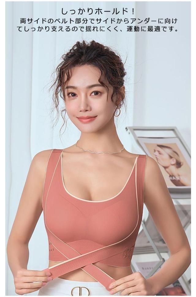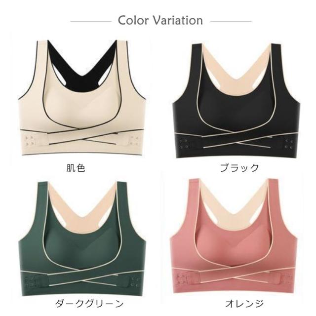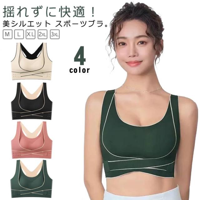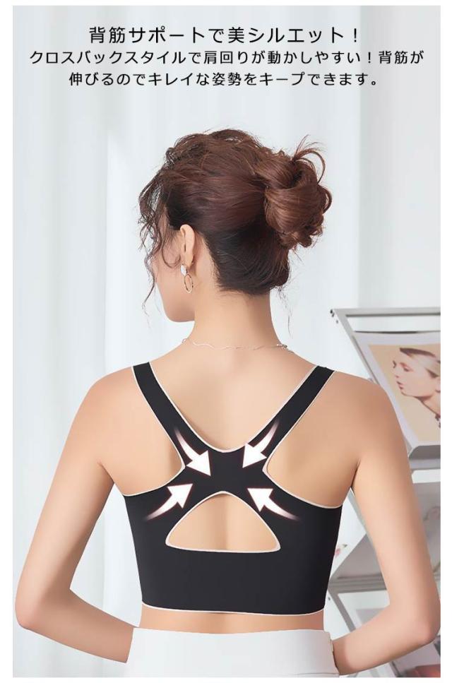 | 揺れずに快適!美シルエット スポーツブラ。 しっかりホールド!両サイドのベルト部分でサイドからアンダーに向けてしっかり支えるので揺れにくく、運動に最適です。 3段階調節できるホック!ホックが3列になっているのでその日の体調に合わせて調整可能! 背筋サポートで美シルエット!クロスバックスタイルで肩回りが動かしやすい!背筋が伸びるのでキレイな姿勢をキープできます。 段差になりにくい幅広構造!脇部分を高めに作っているので気になる脇の下の段差もなくスッキリ! シームレスで蒸れにくい。生地は柔らかくサラッとして、お肌にも優しいシームレス設計。 パッド部分も通気性が高く、汗をかいても安心! | |