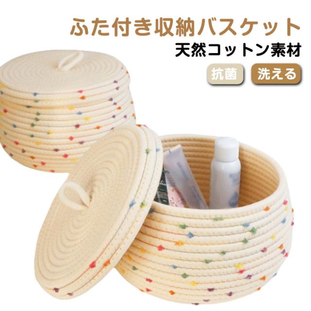 かご ふた付き 卓上収納かご ロープバスケット ナチュラル 収納バスケット 小物入れ デスク整理 カゴ ロープ 収納バスケット コットン 洗える 化粧品収納バスケット 収納ボックス 装飾バスケット 玄関収納 小物整理 おもちゃ収納ボックス 収納ケース