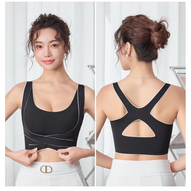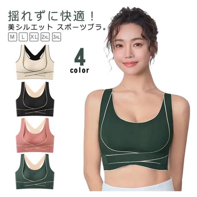 | 揺れずに快適!美シルエット スポーツブラ。 しっかりホールド!両サイドのベルト部分でサイドからアンダーに向けてしっかり支えるので揺れにくく、運動に最適です。 3段階調節できるホック!ホックが3列になっているのでその日の体調に合わせて調整可能! 背筋サポートで美シルエット!クロスバックスタイルで肩回りが動かしやすい!背筋が伸びるのでキレイな姿勢をキープできます。 段差になりにくい幅広構造!脇部分を高めに作っているので気になる脇の下の段差もなくスッキリ! シームレスで蒸れにくい。生地は柔らかくサラッとして、お肌にも優しいシームレス設計。 パッド部分も通気性が高く、汗をかいても安心! | |