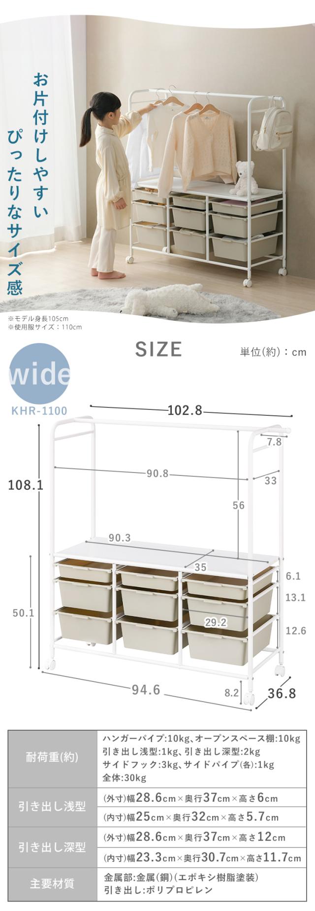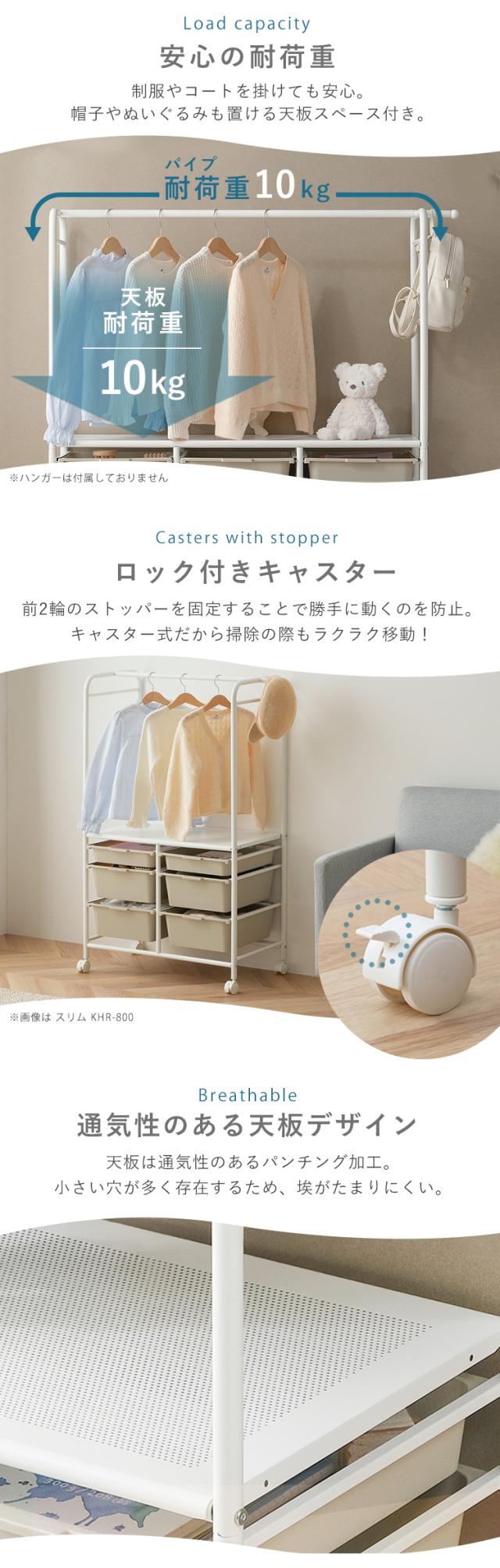 ★クーポンあり★ ハンガーラック 子供 ワイド ランドセルラック キャスター付き 収納 キッズ 頑丈 洋服掛けラック おしゃれ ワードローブ 引き出し 洋服 子供部屋 子ども アイリスオーヤマ KHR-1000 * 送料無料