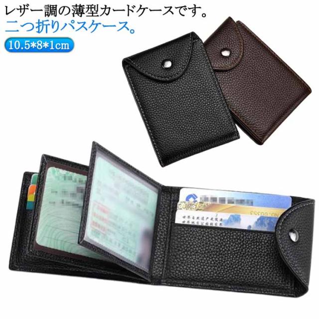 薄型 カードケース メンズ カードケース レディース ケース レザー調 カードケース カード収納ケース 二つ折り 免許証 免許証入れ 定期入れ 男性 父の日 icカード PUレザー パスケース ギフト プレゼント 実用的 クレジットカード