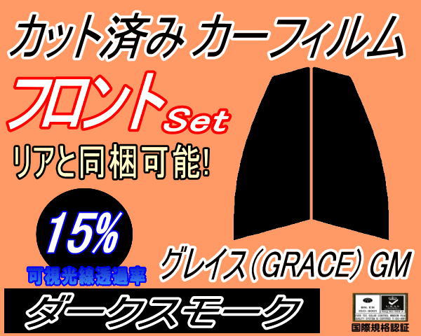 フロント (s) グレイス (GRACE) GM (15%) カット済みカーフィルム 運転席 助手席 三角窓 左右セット スモークフィルム フロントドア 車種別 スモーク 車種専用 成形 フイルム 日よけ 窓 ガラス ウインドウ 紫外線 UVカット GM4 GM5 ホンダ