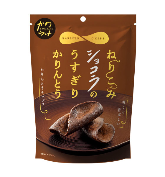 ちょうどよい薄さにカットした生地を揚げ、濃厚なチョコをまだらに絡めました。軽くてパリパリのうすぎりタイプのチョコかりんとうです。