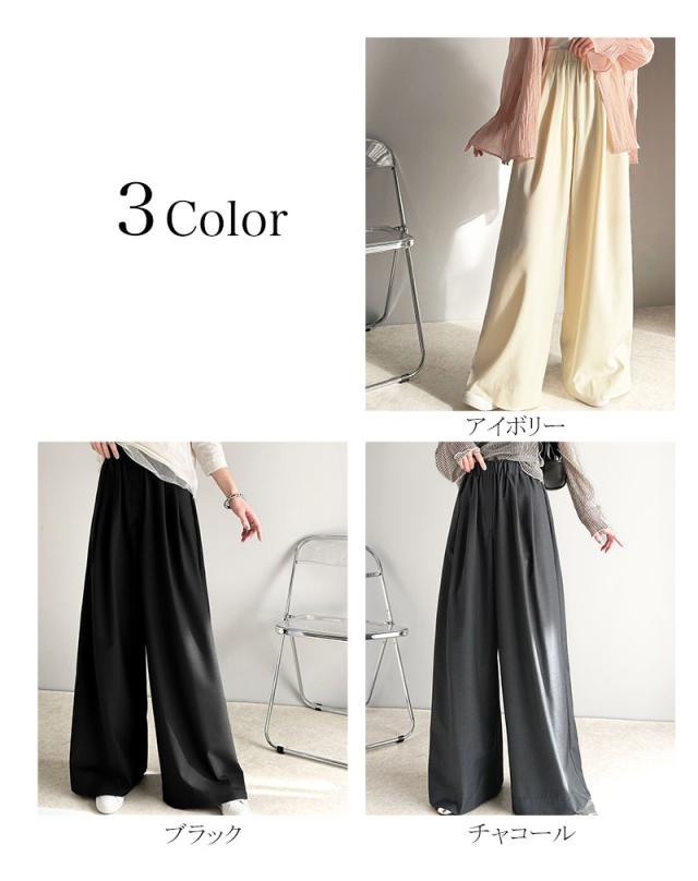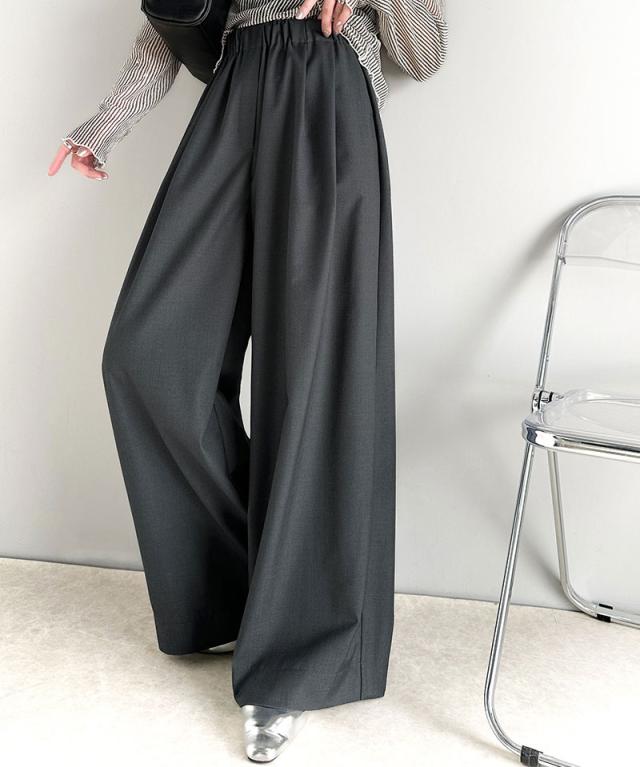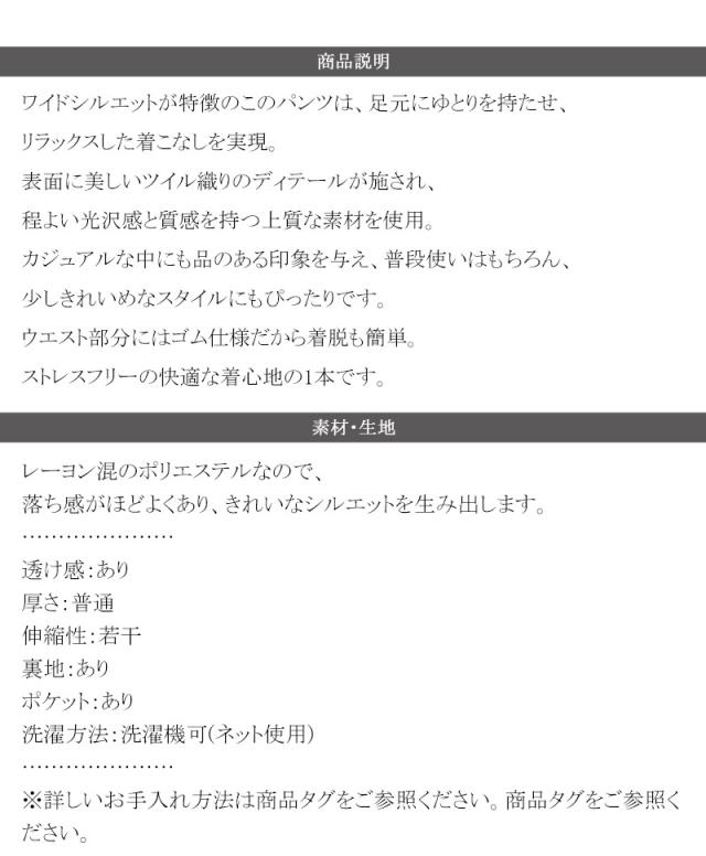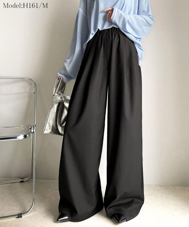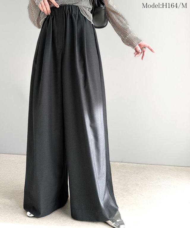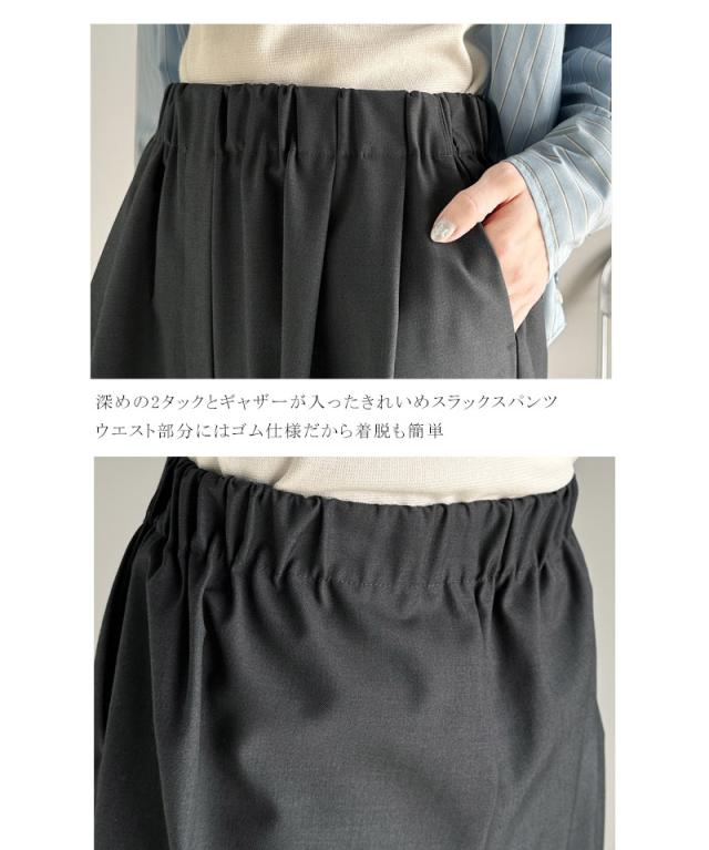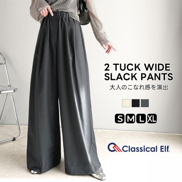クラシカルエルフ冬新作 ボトムス パンツ レディース スラックス ワイドパンツ ハイウエスト 深め 2タック ギャザー レーヨン混 シンプル スタイリッシュ オールシーズン 総ゴム リラックス カジュアル きれいめ 光沢感 大きいサイズ 2025ss ce0940227