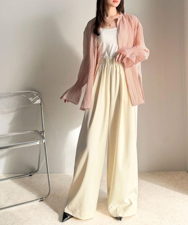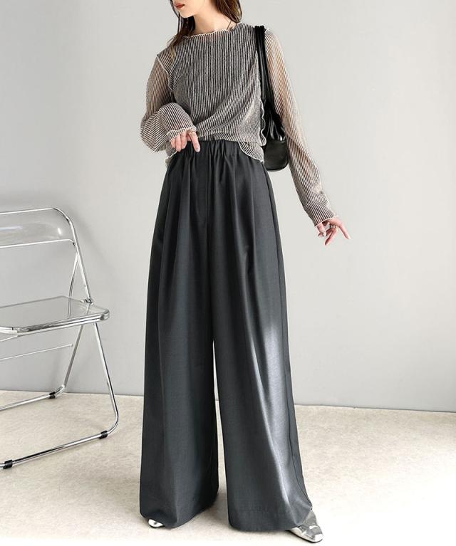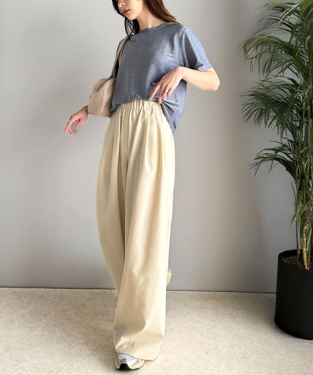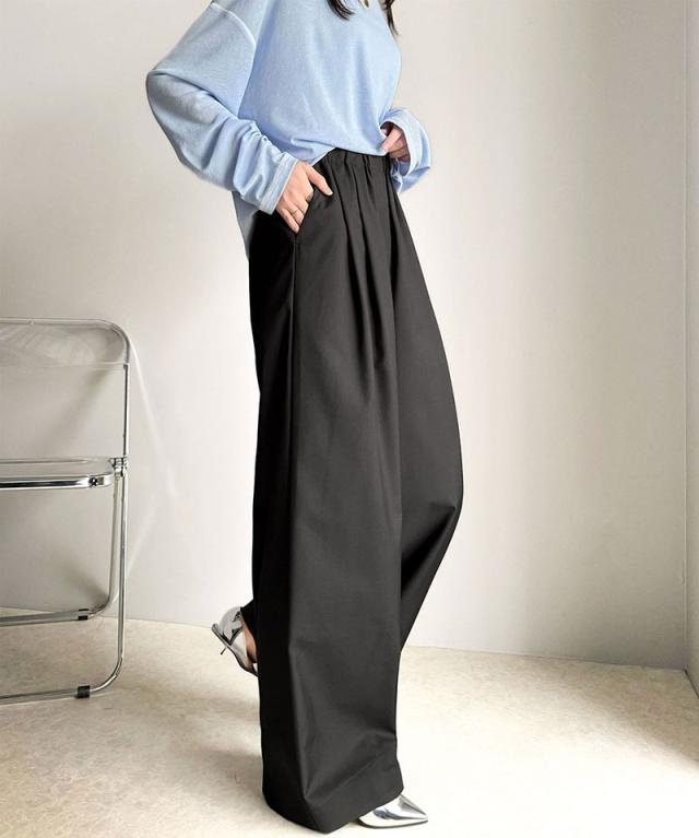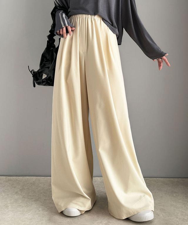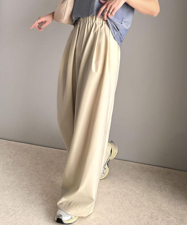 クラシカルエルフ冬新作 ボトムス パンツ レディース スラックス ワイドパンツ ハイウエスト 深め 2タック ギャザー レーヨン混 シンプル スタイリッシュ オールシーズン 総ゴム リラックス カジュアル きれいめ 光沢感 大きいサイズ 2025ss ce0940227