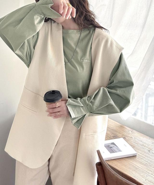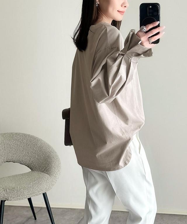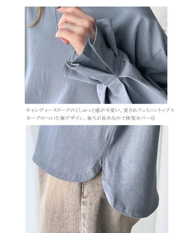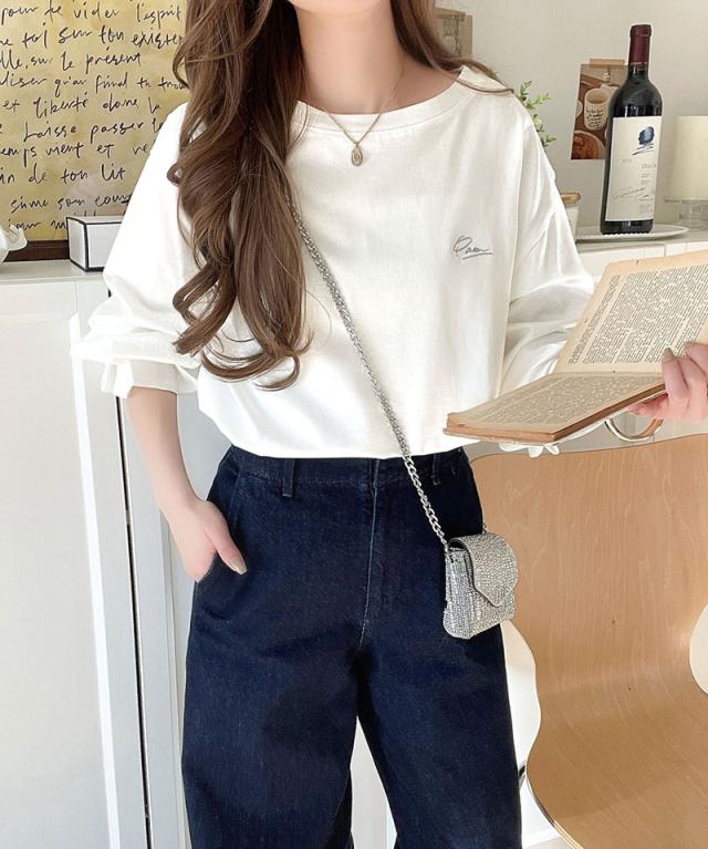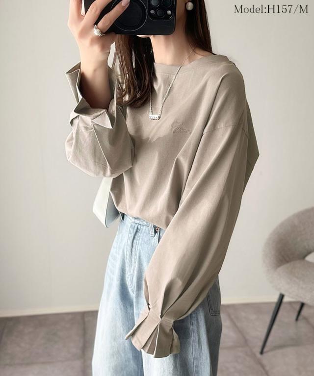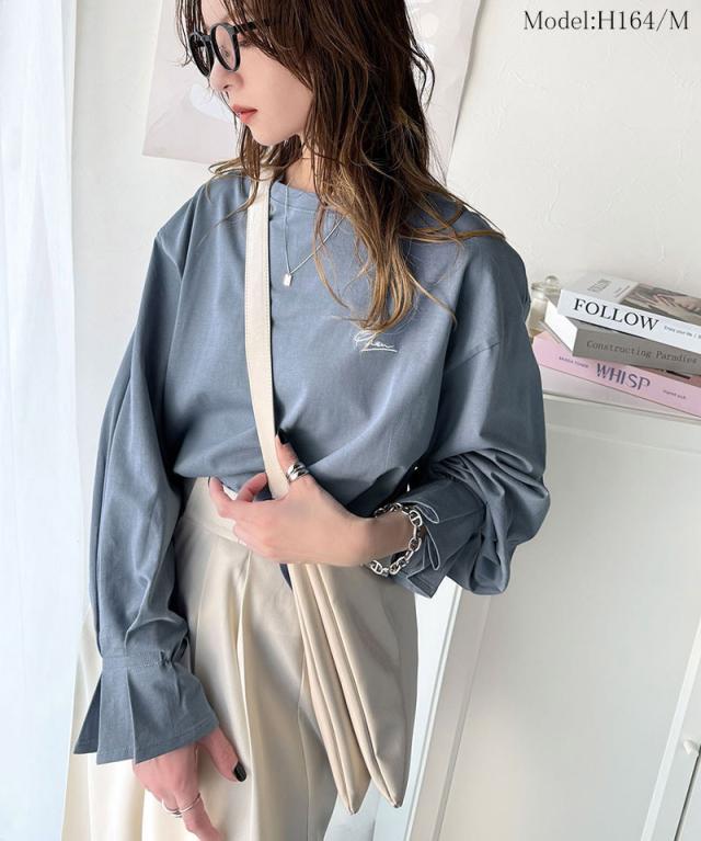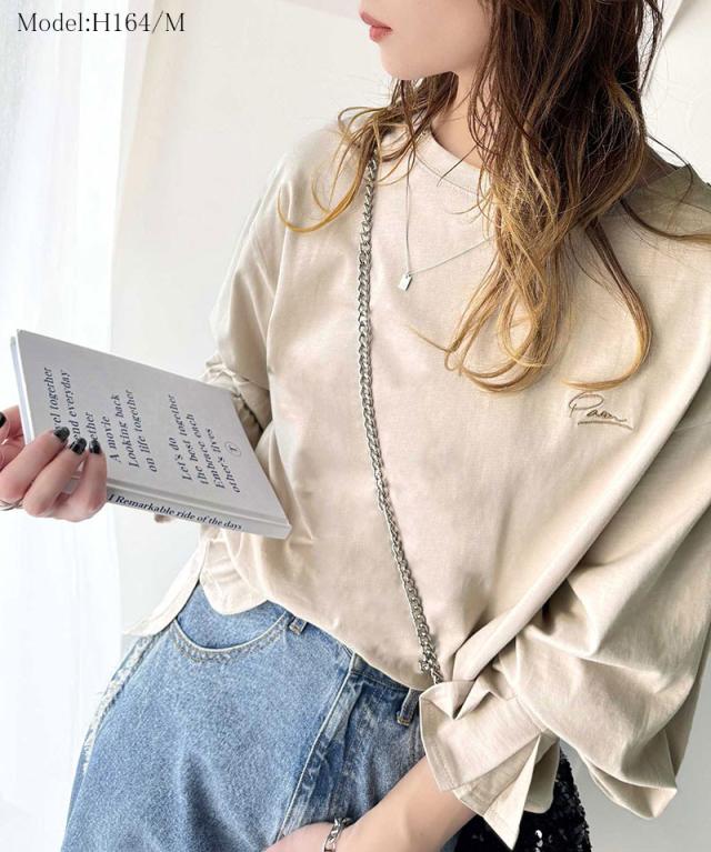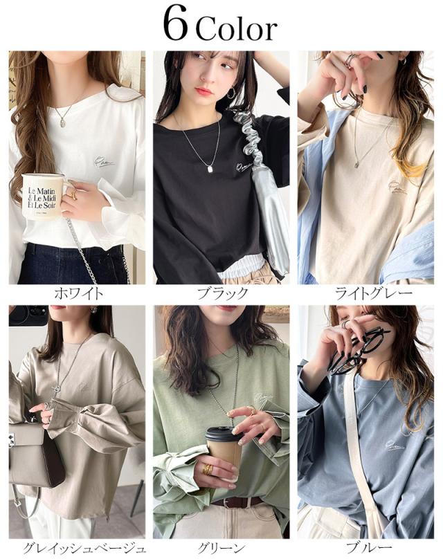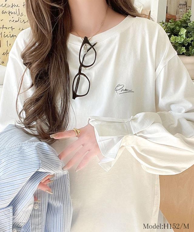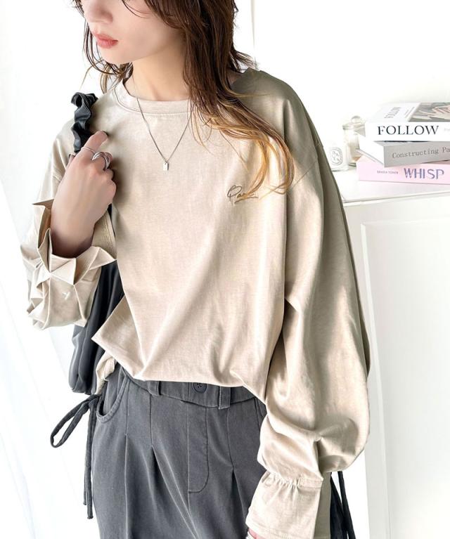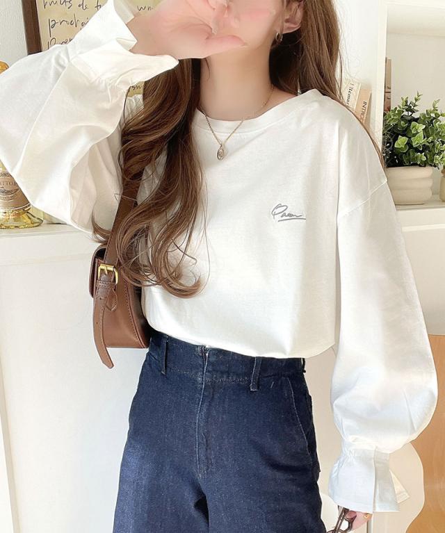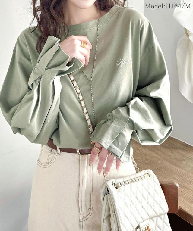 ★愛らしさを纏った。綿100%英字胸刺繍キャンディースリーブシルケットカットソー(長袖)★