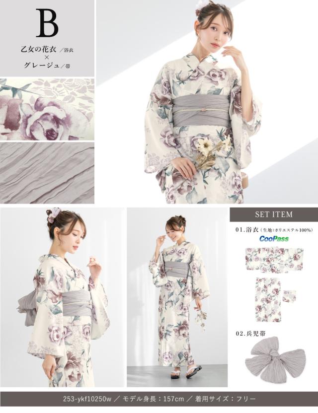 浴衣 セット レディース 二部式 セパレート 浴衣セット 兵児帯 2026 floro 簡単 悩まない 涼しい 白 大人 おしゃれ 可愛い フリー 送料無料