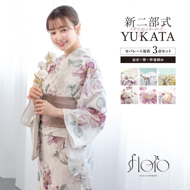 SOUBIENのプライベートブランド『floro by SOUBIEN』のセパレート浴衣3点セットです。