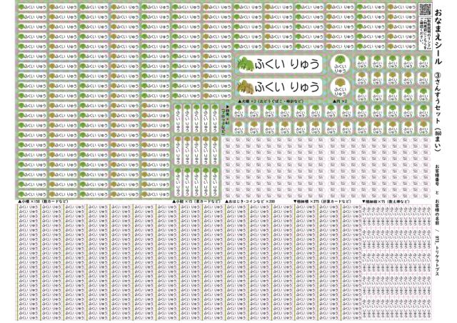 | 特徴 | 『はんこショップおとべ オリジナル商品』 小学校入学準備にとっても便利なお名前シール 「さんすうセット(860枚)・生き物 恐竜 動物」です。 お子様のお好きな絵柄をお選びいただけます。 さんすうセットはA4シートに大小8種類のシールが全部で860枚入りです。 小学校入学準備で必要な、さんすうセット専用シートです。 おどうぐばこ、時計、数カード、計算カード、サイコロ、おはじき、コインなど 小さくて名前の記入が難しいものもシールがあればラクラク簡単! 大容量ですので、様々なアイテムにお使いいただけます。 |