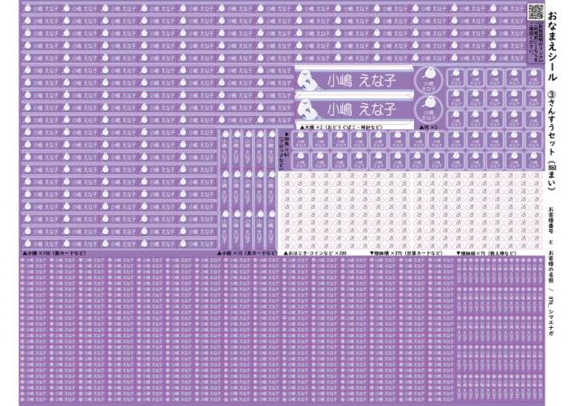 さんすうセットはA4シートに大小8種類のシールが全部で860枚入りです。