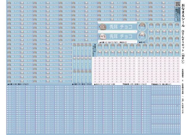 | 仕様 | 【シールサイズ】 大ヨコ/W60×H15mm(2枚) 小ヨコ/W20×H6mm(150枚) 小タテ/W6×H20mm(15枚) 極細ヨコ/W15×H3mm(375枚) 極細タテ/W3×H15mm(75枚) 円/W15×H15mm(2枚) 四角/W10×H10mm(41枚) おはじきコイン/W6×H3mm(200枚) ●印刷の種類/インクジェットプリント ●シート素材/塩ビ |