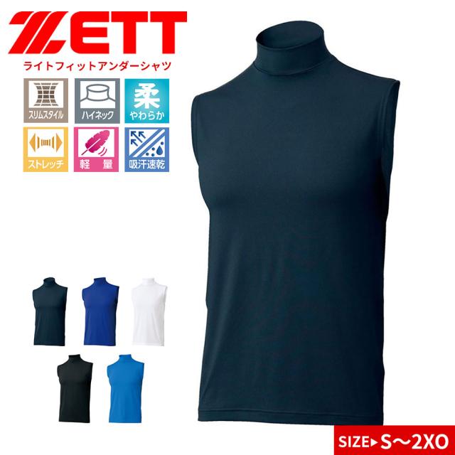 ゼット アンダーシャツ 野球 ベースボール ノースリーブ 吸汗 速乾 ストレッチ スポーツ インナー ベースレイヤー ハイネック タートルネック ライトフィットアンダーシャツ ソフトボール 黒 白 ブルー ネイビー ZETT bo7920
