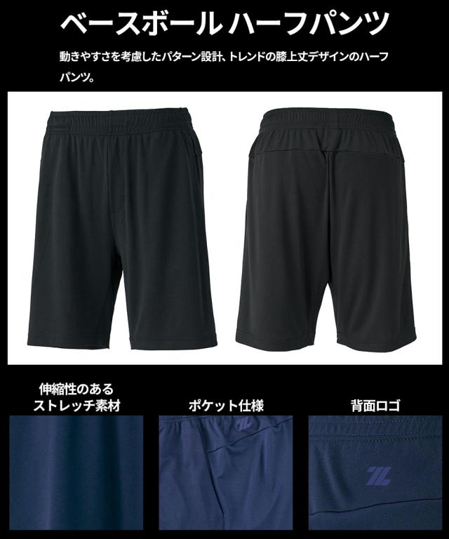 ゼット ハーフパンツ メンズ 野球 ソフトボール ベースボール トレーニング 膝上丈 吸汗 速乾 ストレッチ 軽量 スポーツ ユニフォーム スポーツ カジュアル 無地 シンプル 黒 ブラック ネイビー ZETT bp818hp