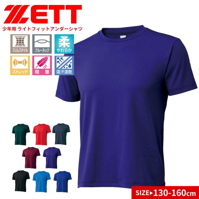 ゼット アンダーシャツ キッズ 野球 ベースボール 半袖 吸汗 速乾 ストレッチ スポーツ インナー ベースレイヤー 丸首 ライトフィットアンダーシャツ クルーネック 黒 白 ブルー ネイビー グリーン レッド エンジ パープル ZETT bo1910j