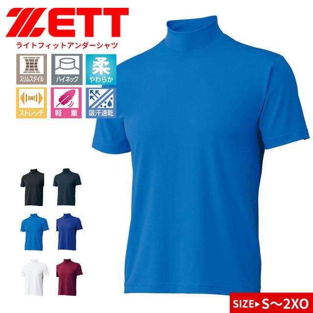 ゼット アンダーシャツ 野球 ベースボール 半袖 吸汗 速乾 ストレッチ スポーツ インナー ベースレイヤー ハイネック ソフトボール ライトフィットアンダーシャツ 黒 白 ブルー ネイビー レッド エンジ ZETT bo1920