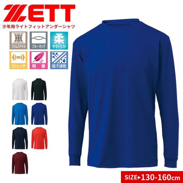 ゼット アンダーシャツ キッズ 野球 ベースボール 長袖 吸汗 速乾 ストレッチ スポーツ インナー ベースレイヤー 丸首 ライトフィットアンダーシャツ クルーネック 黒 白 ブルー ネイビー レッド エンジ ZETT bo8910j
