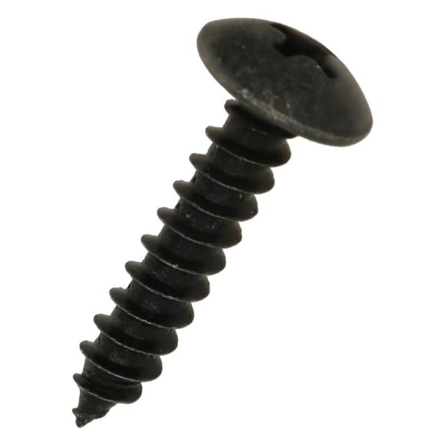 十字穴付きのトラス頭タッピンねじです。座面が大きいので、座面陥没を防止する効果があります。相手部材には規定の下穴が必要です。材質は鉄で耐食性向上のため、黒色亜鉛クロメートめっきがしてあります。