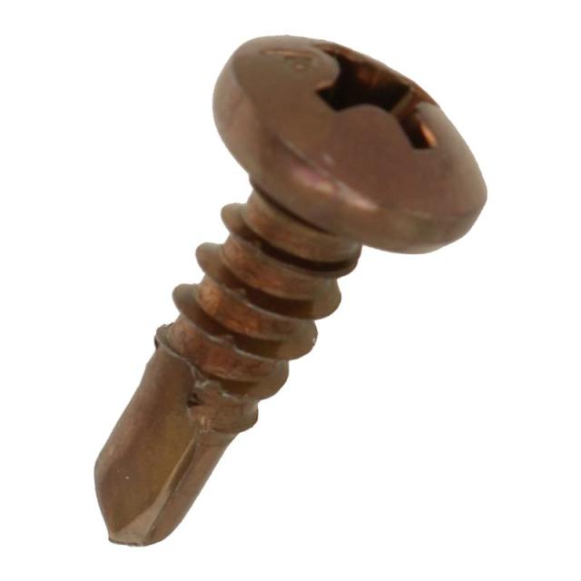 ●用途:相手部材が鋼板でも下穴が不要ですので便利です。現場で位置決めしながら直接締結できます。相手鋼板の厚みに応じて品番、サイズを選定します。耐食性に優れていますので湿気の多い場所等に使用します。相手部材に合わせて色合わせが出来ます。●材質:ステンレスSUS410 ●表面処理:ブロンズめっき ●呼び径:4 ●長さ・厚み:13 ●頭部形状:なべ ●頭部穴形状:十字穴(+) ●適用工具・サイズ:(+)ドライバー2番