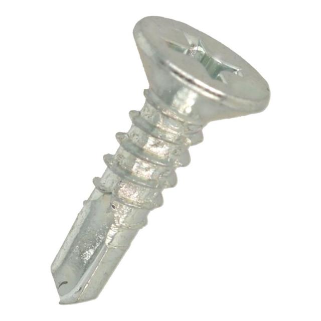 材質は鉄で三価クロメートめっき。十字穴付きの皿頭タッピンねじで先端が切り刃になっています。この切り刃で鉄板に下穴をあけ、連動してタップ立て、締付けまでがドリルねじ一本で出来ます。頭部は出ませんが部材に座ぐり加工が必要です。規