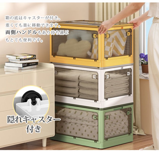 収納ボックス 折りたたみ 5面開閉 M(40L) 単品 新生活 コンテナー おしゃれ 隠れキャスター付き 組立簡単 衣装布団 収納ケース 災害用 積み重ね 大容量 物入れ 移動便利 透明 ボックス コンパクト 家庭用 車用 プラスチック