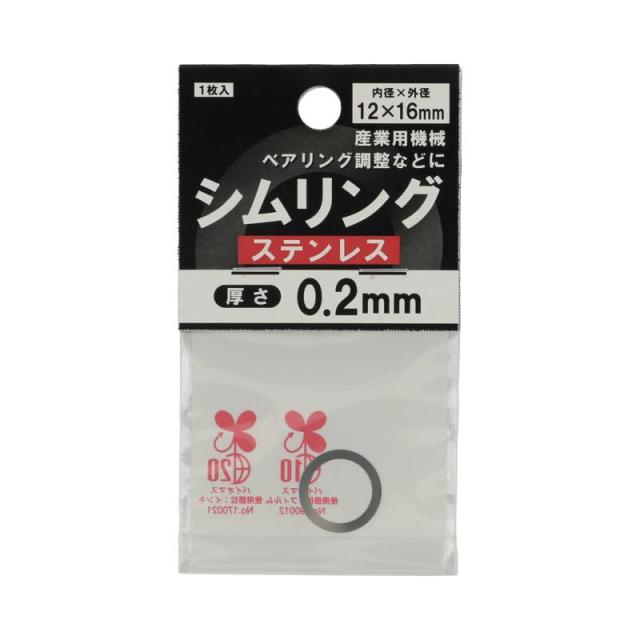 ●用途:すき間調整用のリング型スペーサーです。●材質:ステンレス ●呼び径:12 ●長さ・厚み:0.2 ●外径・幅:16