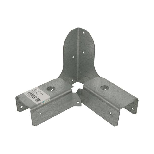 溶融亜鉛めっき鋼板。柱に2本の部材を90度で組むことができます。内側の重なった部分をねじ留めすることにより、しっかりと直角になります。