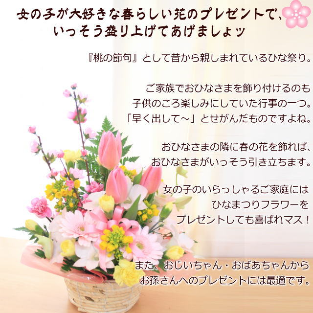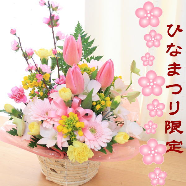 今度はひなまつり限定!桃の花入り!春色アレンジメント プレゼント ギフト 花 [生花アレンジメント]