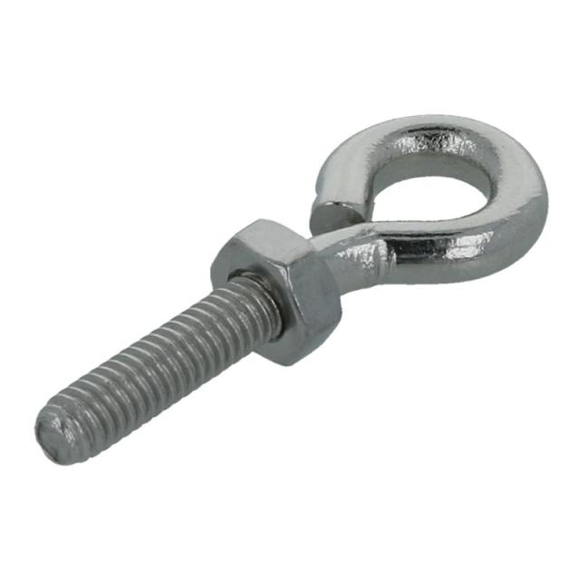 ●用途:木材や金属に穴を開け、ボルトを通してナットで固定する。リングはロープ止めに使用。軽量物の吊り下げなどに使用。●材質:ステンレス ●規格:メートル並目ねじ ●呼び径:4 ●ピッチ:P0.7