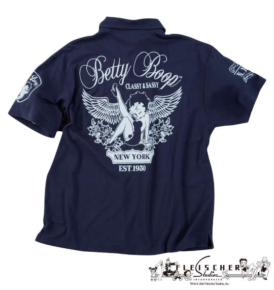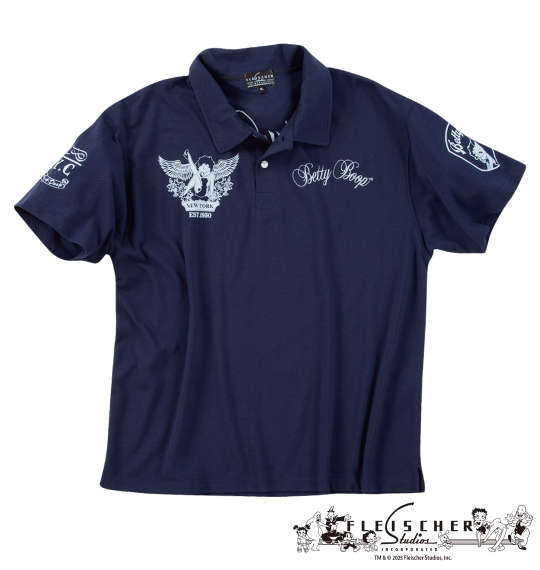 大きいサイズ メンズ BETTY BOOP 鹿の子 刺繍&プリント 半袖 ポロシャツ ネイビー 1278-5537-1 3L 4L 5L 6L 8L