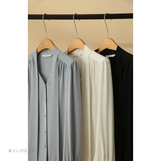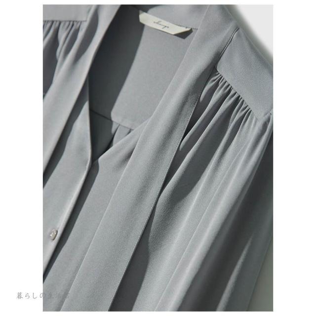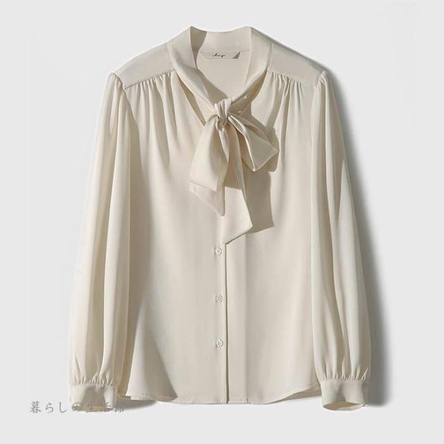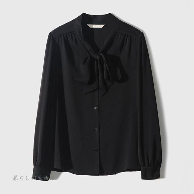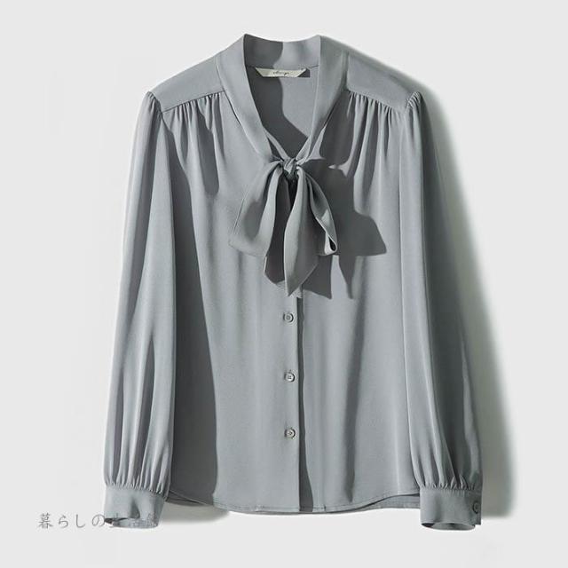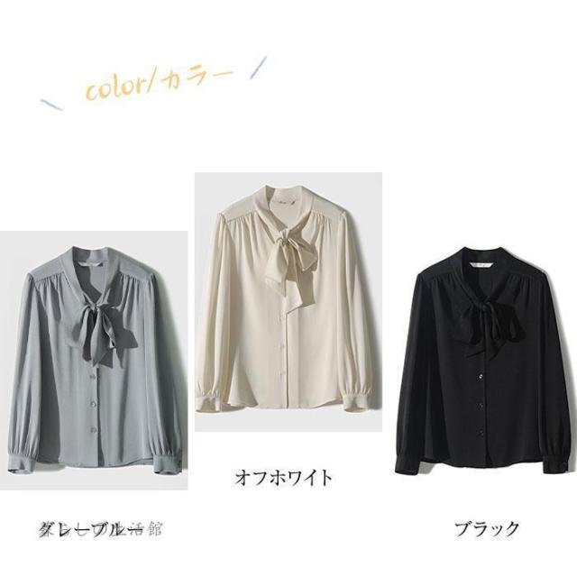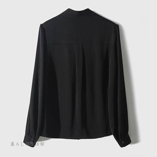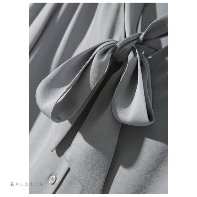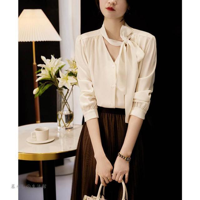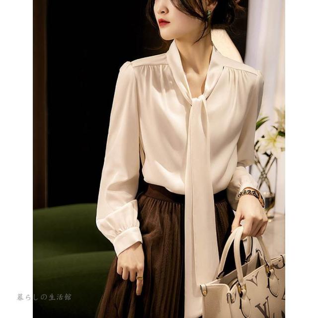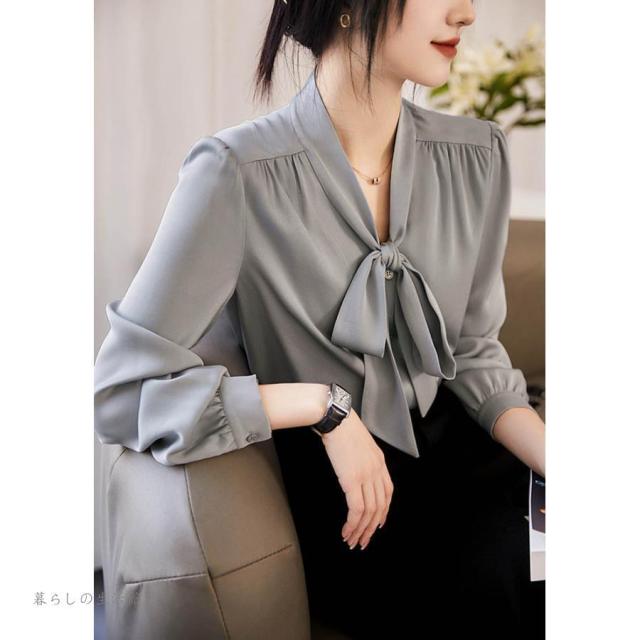 ボウタイブラウス 長袖 レディース Vネック シフォン シャツブラウス 無地 トップス とろみブラウス スーツインナー 入学式 卒業式 ママ オフィス フォーマ