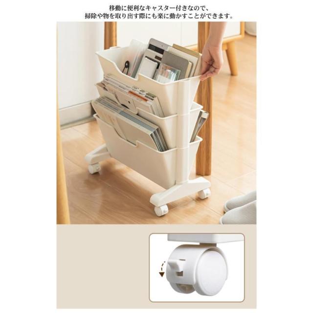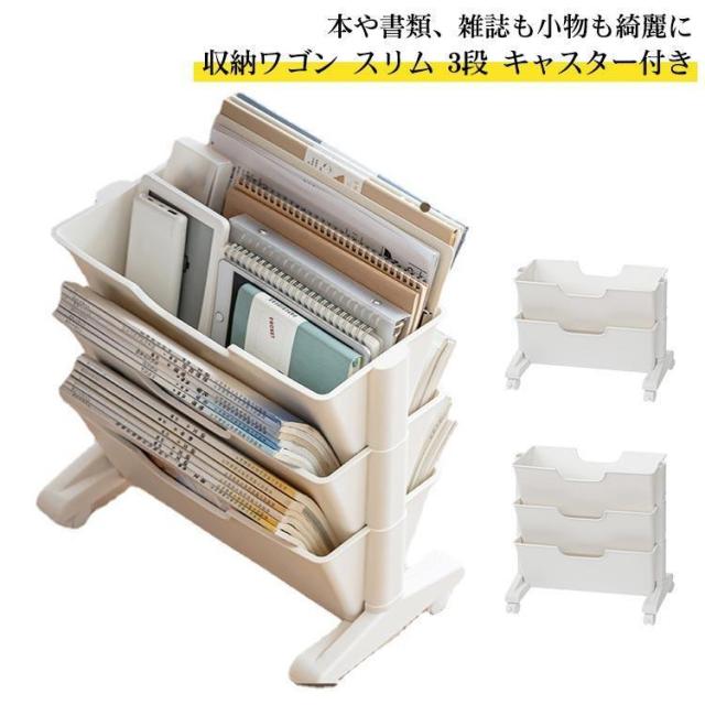 ファイルワゴン マガジンラック スリム 2段/3段 キャスター キャスター無し 雑誌収納 本収納 新聞収納 新聞ラック 本棚 棚 移動 小物収納 文房