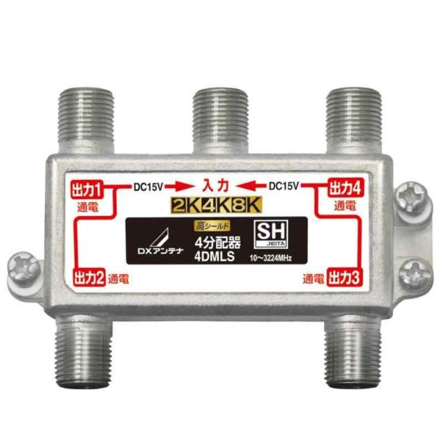 DXアンテナ 分配器 【2K 4K 8K 対応】 4分配 全端子間通電 金メッキプラグ F型端子 ダイカスト製高シールド構造 4DMLS