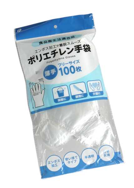 ポリエチレン手袋 薄手 フリーサイズ 100枚入 (100円ショップ 100円均一 100均一 100均)