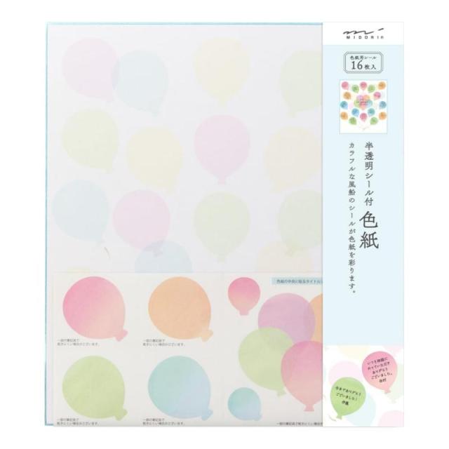 ミドリ 色紙 シール付 カラー色紙 半透明 風船柄 33211006