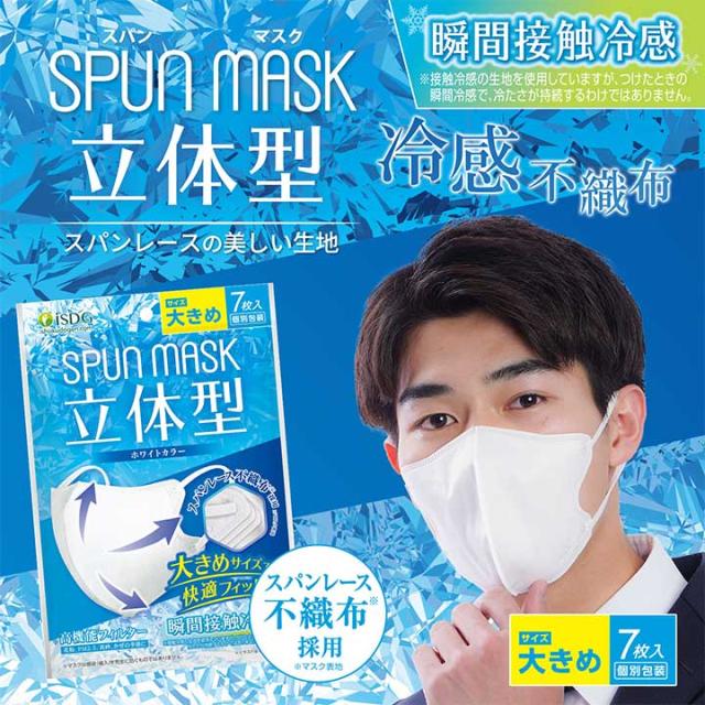 【 冷感タイプ 】 立体型スパンレース不織布カラーマスク 大きめ 7枚入り (ホワイト) / 災害グッズ 災害時 防災グッズ 防災用品 災害対策 冷感 夏グッズ 暑さ対策 ひんやりグッズ スパンレース スパンマスク 立体マスク 不織布 使い捨て カラーマスク マスク