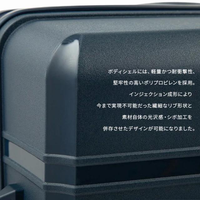 | 双輪キャスターを備えたインジェクション成形のスーツケース マットなボディに光沢のあるラインが光るスタイリッシュなデザイン。ハンドル部分も本体カラーに合わせた統一感のあるカラーリングです。 ●チェックインサイズ/M 3〜5日の旅行向け。 ●双輪キャスター 旋回性に優れ、容易に方向転換可能な双輪キャスター。 ●ポリプロピレンボディ ボディシェルは軽量、耐衝撃性、堅牢に優れるポリプロピレンを採用。 ●内装両面仕切り付 内装は荷こぼれが起きないよう両面ファスナー仕切り付き。 仕切りにはメッシュポケットが付いているので細かな小物の収納にも便利です。 ●インナーポーチ付 パッキングに便利な大小のインナーポーチが2個付属。 ●TSダイヤルファスナーロック TSダイヤルファスナーロック(Travel Sentry®認可ロック)搭載で、施錠したまま預け入れ可能。 |