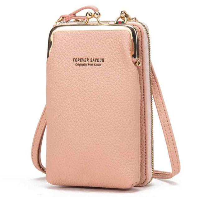 [Your Smile is My Gift] スマホポーチ レディース ショルダー 入れたまま操作 スマホポシェット お財布ポシェット がま口 (ピンク)