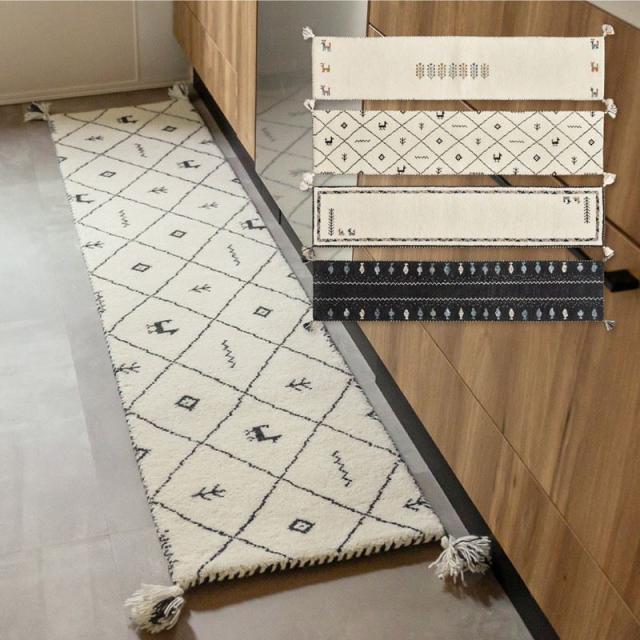 キッチンマット ギャッベ絨毯 ラグマット 40x240cm 手織り 厚手 インド製 ウール100% 四隅タッセル おしゃれ 可愛い ナチュラル