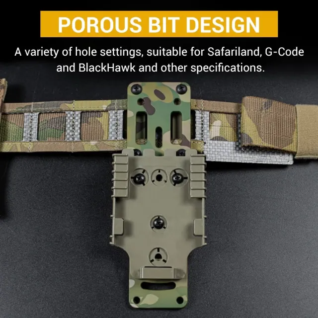 4.不必要な動き、柔軟性、工場のポリマーベルトアダプターへの一般的なスライドを排除するように設計されています。ピストルをシューターベルトラインの下に下げる人気のキャリーモードをサポートしており、ホルスターシステムがボディアーマーとポーチをクリアできるようにします。