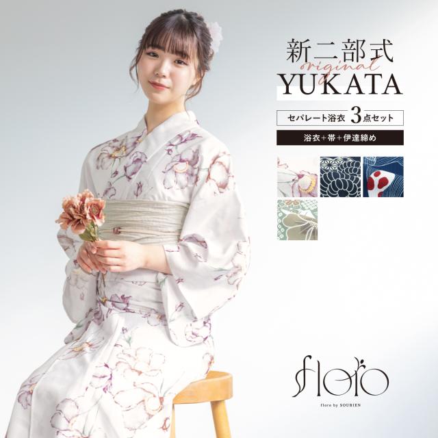 SOUBIENのプライベートブランド『floro by SOUBIEN』のセパレート浴衣3点セットです。