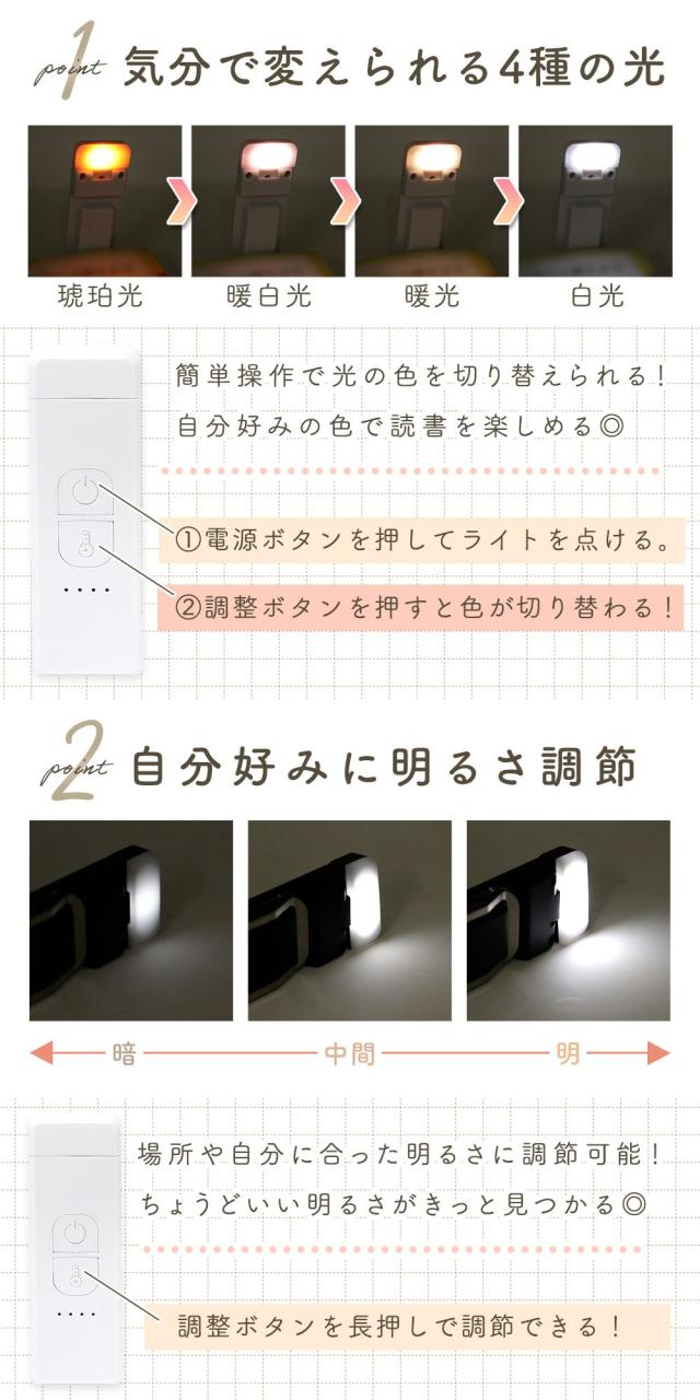 ブックライト/充電式/USB/読書灯/LED/調光/ケーブル付き/クリップ/ポータブル/コンパクト/持ち運び/明るさ調整/色温度/角度調節/勉強/ナイトライト/コードレス/テーブルランプ/懐中電灯/ミニライト/小型/小さい/リーディングライト/スタンドライト/寝かしつけ/照明/しおり/本につける/寝室/リビング/旅行/読書ライト/夜間/キャンプ/アウトドア/楽譜/緊急/停電/地震/防災/夜間/非常用/クリップライト/固定/寝る前/携帯用/贈り物/プレゼント/間接照明/目に優しい/